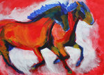 Paarden in acryl, conte en aquarel